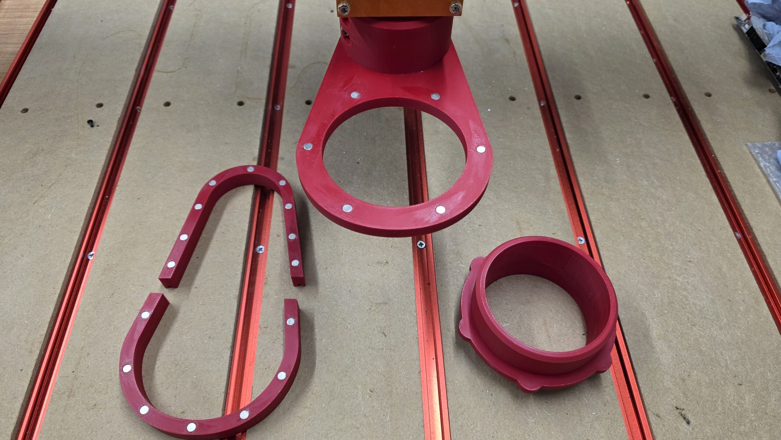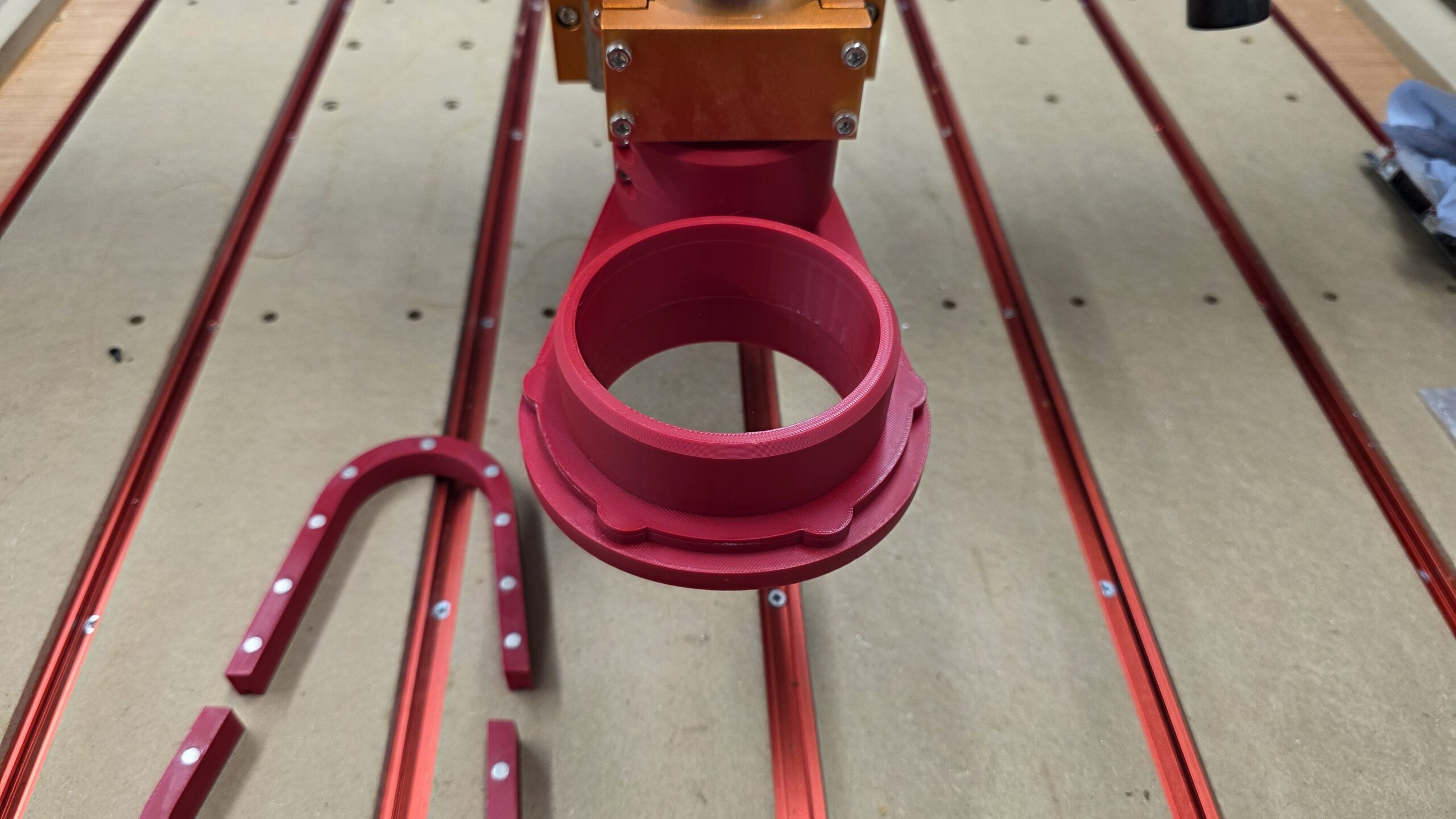 65mm Dust boot for 4in hose, with magnetic interchangeable bases for different depths and magnetic hose connection. Including a bristle file that you can print in TPU